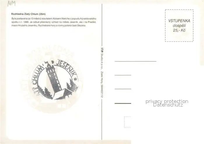 Jeseniky_CZ Rozhledna Zlaty Chlum postalisch nicht gelaufen nach 1965 Erhaltung siehe scans [WerneD78] WernPID7