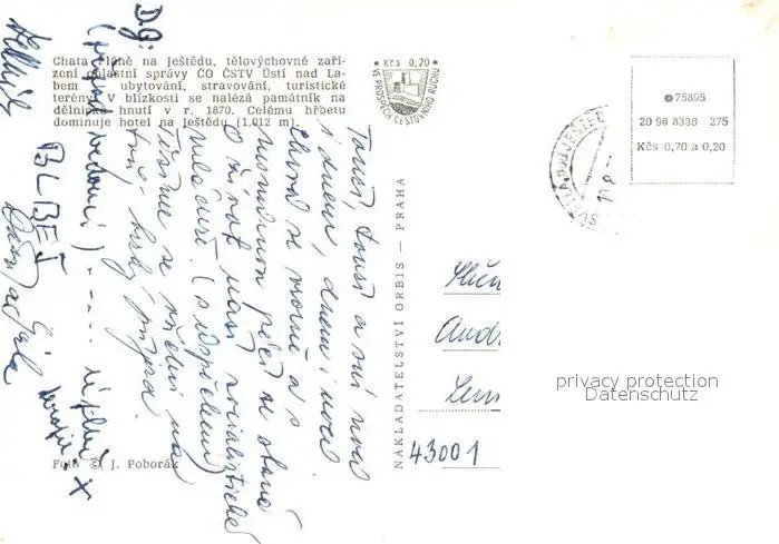 Jestedu chata na Planich Jestedu postalisch gelaufen 1921-1965 Erhaltung siehe scans [LiesaD40] LiesID40