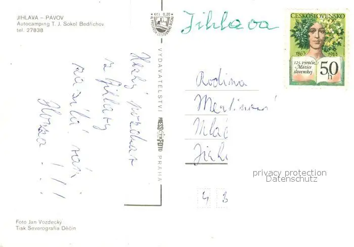 Jihlava Autocamping Pavov Jihlava postalisch gelaufen nach 1965 Erhaltung siehe scans [LiesaD40] LiesID40