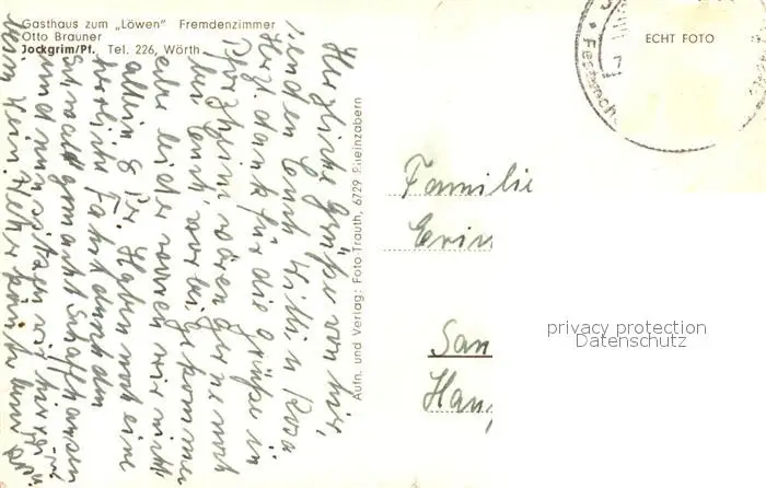 Jockgrim Gasthaus zum L?wen Otto Brauner Jockgrim postalisch gelaufen nach 1965 Erhaltung siehe scans [LiesaD40] LiesID40