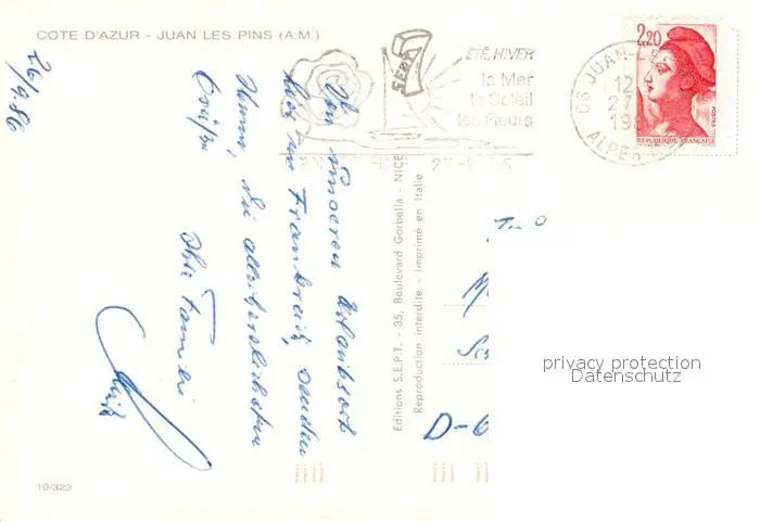 Juan-les-Pins Strand Juan-les-Pins postalisch gelaufen 1986 Erhaltung siehe scans [LiesaD40] LiesID40