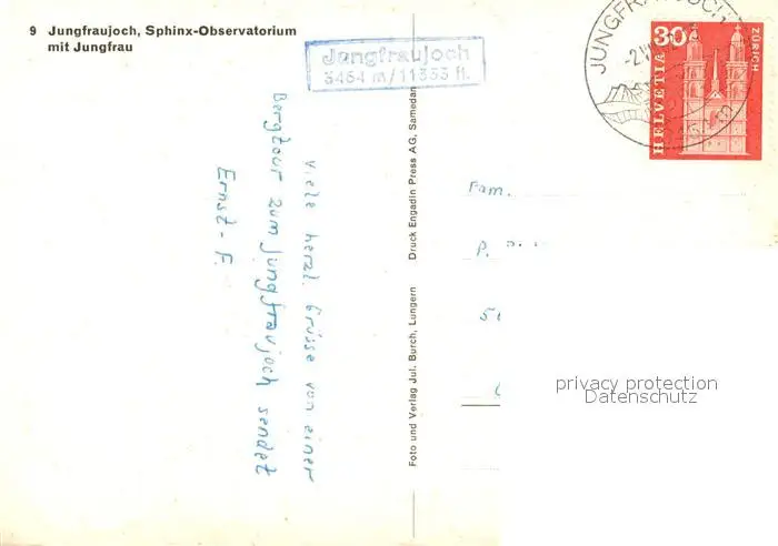 Jungfraujoch Sphinx Observatorium Jungfrau Winter Jungfraujoch postalisch gelaufen 1962 Erhaltung siehe scans [KathaD81] Kathoren