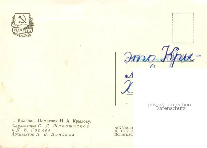 Kalinin_Twer Krilow Denkmal Kalinin Twer postalisch nicht gelaufen 1921-1965 Erhaltung siehe scans [NatalD47] NataID47