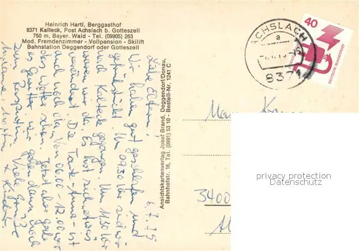 Kalteck Kategorie Alte Ansichtskarten Postkarten bx54833 Kalteck Berggasthof Heinrich Hartl Kalteck postalisch gelaufen 1975 Erhaltung siehe scans [NatalD47]