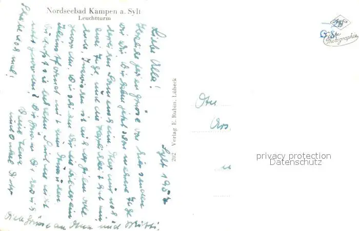 Kampen_Sylt Leuchtturm Kampen Sylt postalisch nicht gelaufen 1954 Erhaltung siehe scans [NatalD47] NataID47