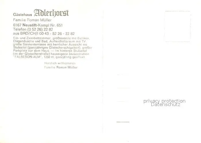 Kampl Gaestehaus Adlerhorst Kampl postalisch nicht gelaufen nach 1965 Erhaltung siehe scans [FriedD77] Frierer
