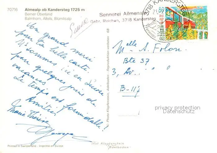 Kandersteg_BE Almealp Luftseilbahn Balmhorn Kandersteg_BE postalisch gelaufen 1989 Erhaltung siehe scans [NatalD47] NataID47