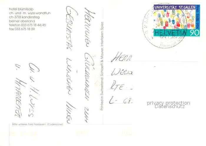 Kandersteg_BE Hotel Restaurant Bluemlisalp Kandersteg_BE postalisch gelaufen 1998 Erhaltung siehe scans [KathaD81] Kathoren