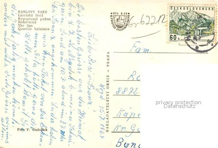 Karlovy_Vary Badeviertel Karlovy Vary postalisch gelaufen 1964 Erhaltung siehe scans [PaolaD17] PaolPID1