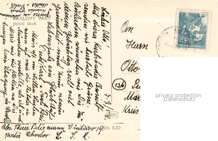 Karlovy_Vary_Karlsbad Jeleni Skok postalisch gelaufen 1958 Erhaltung siehe scans [LiesaD40] LiesID40