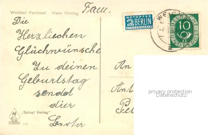 Karlsbad_Eger_Karlovy_Vary Teilansicht am Wasser postalisch gelaufen 1952 Erhaltung siehe scans [LiesaD40] LiesID40