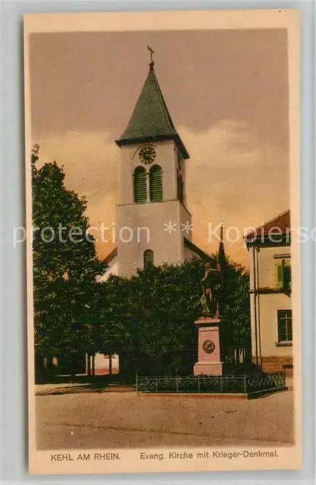 Kehl_Rhein Kirche mit Kriegerdenkmal Kehl_Rhein postalisch nicht gelaufen bis 1920 Erhaltung siehe scans [LiesaD40] LiesID40