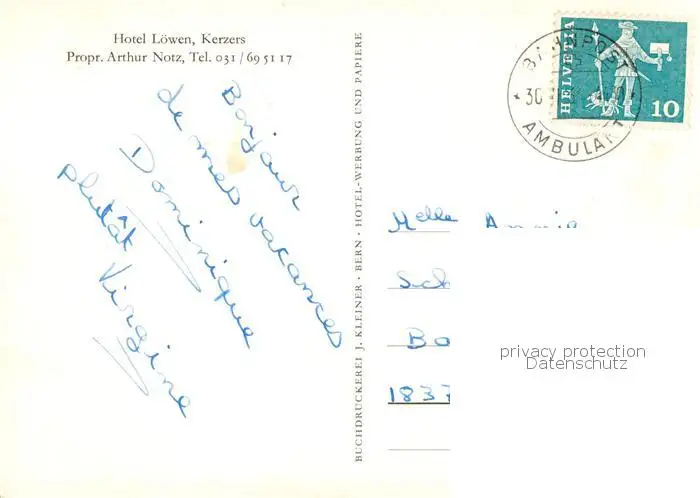 Kerzers Flur Kegelbahn Kerzers postalisch gelaufen nach 1965 Erhaltung siehe scans [FriedD77] Frierer