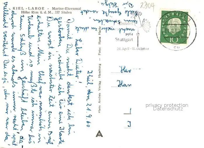 Kiel Laboe Marine-Ehrenmal Kiel postalisch gelaufen 1960 Erhaltung siehe scans [NatalD47] NataID47
