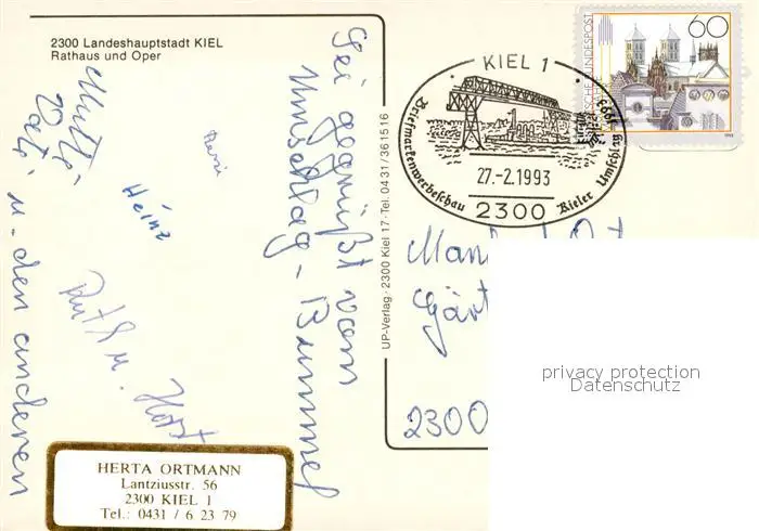 Kiel Rathaus Oper Kiel postalisch gelaufen 1993 Erhaltung siehe scans [KathaD81] Kathoren