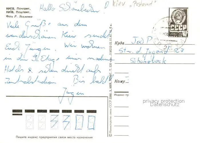 Kiev_Kiew Postamt Kiev_Kiew postalisch gelaufen 1986 Erhaltung siehe scans [FriedD77] Frierer