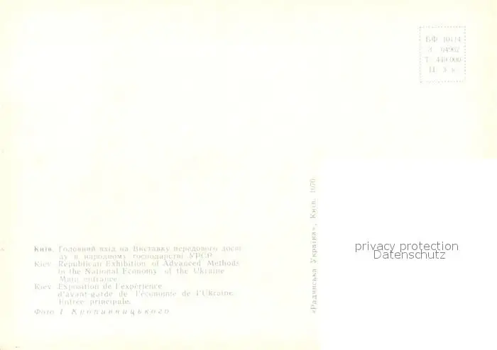Kiev_Kiew Republican Exhibition of Advanced Methods in the National Economy of the Ukraine Main entrance Kiev_Kiew postalisch nicht gelaufen nach 1965 Erhaltung siehe scans [WerneD78] WernPID7