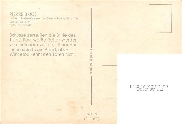 Kino_Film Unter Geiern Pierre Brice Winnetou postalisch nicht gelaufen 1964 Erhaltung siehe scans [PaolaD17] PaolPID1