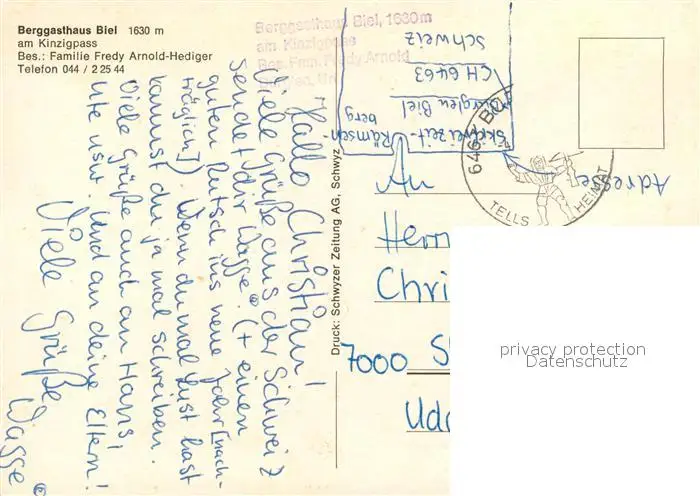 Kinzigpass Berggasthaus Biel Winter Kinzigpass postalisch gelaufen nach 1965 Erhaltung siehe scans [KathaD81] Kathoren