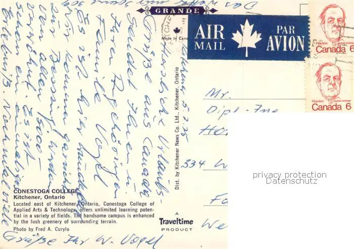 Kitchener Conestoga College aerial view Kitchener postalisch gelaufen 1975 Erhaltung siehe scans [FriedD77] Frierer