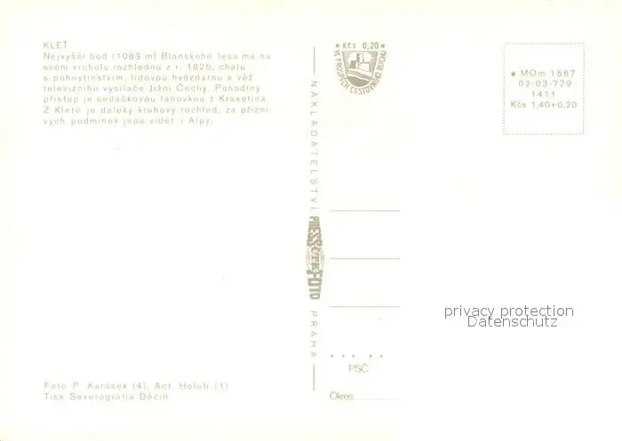 Klet Aussichtsturm Sendeanlage Klet postalisch nicht gelaufen nach 1965 Erhaltung siehe scans [KathaD81] Kathoren