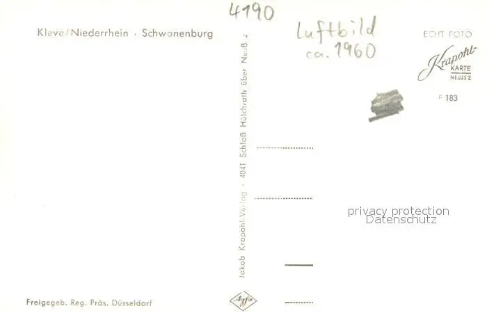 Kleve_Niederrhein Schwanenburg Kleve_Niederrhein postalisch nicht gelaufen 1960 Fliegeraufnahme Erhaltung siehe scans [WerneD78] Fliegeraufnahme WernPID7