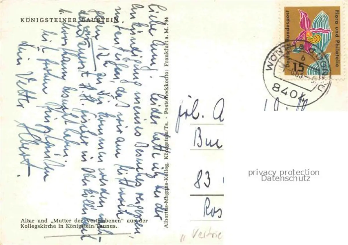 alte Postkarte Koenigstein Taunus Altar und Mutter der Vertriebenen aus der Kollegskirche postalisch gelaufen Erhaltung siehe scans [WerneD78]