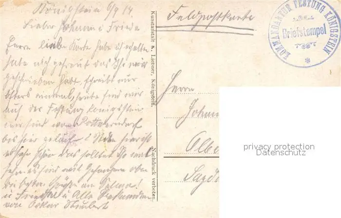Koenigstein_Saechsische_Schweiz Festung Koenigstein_Saechsische postalisch gelaufen 1914 Feldpost Erhaltung siehe scans [KathaD81] Feldpost Kathoren