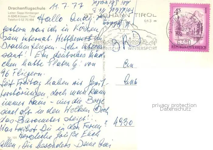Koessen_Tirol Drachenflugschule Koessen Tirol postalisch gelaufen 1977 Erhaltung siehe scans [LiesaD40] LiesID40