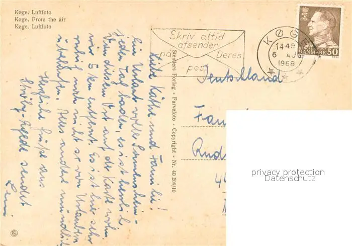Koge Fliegeraufnahme Koge postalisch gelaufen 1968 Erhaltung siehe scans [WerneD78] WernPID7