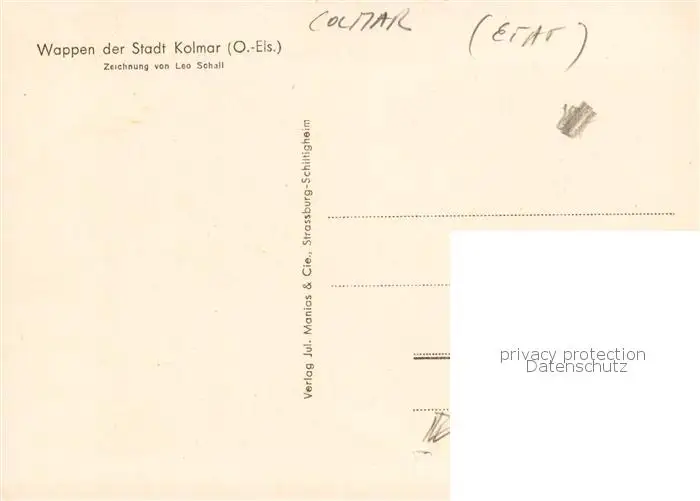 Kolmar_Colmar_Elsass Wappen der Stadt Kolmar postalisch nicht gelaufen 1921-1965 Erhaltung siehe scans [FriedD77] Frierer