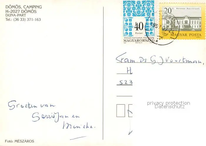 Komarom Doemoes Camping Komarom postalisch gelaufen 1997 Erhaltung siehe scans [KathaD81] Kathoren