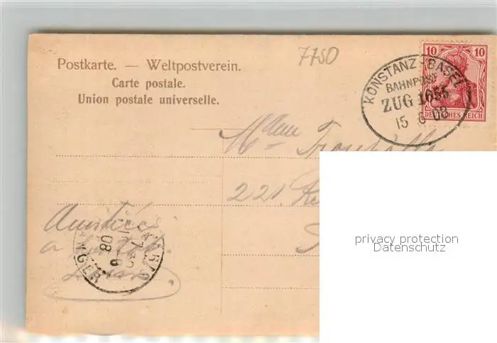 Konstanz_Bodensee Gondelhafen Konstanz_Bodensee postalisch gelaufen 1908 Bahnpost Erhaltung siehe scans [FriedD77] Bahnpost Frierer