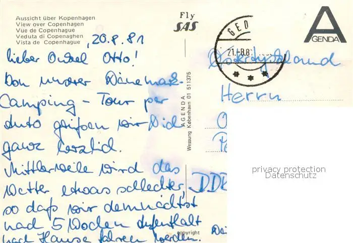 Kopenhagen Stadtansicht Kopenhagen postalisch gelaufen 1981 Erhaltung siehe scans [WerneD78] WernPID7