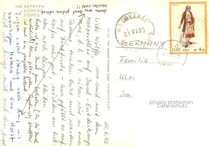 Korfu_Corfu Fliegeraufnahme Korfu Corfu postalisch gelaufen 1975 Erhaltung siehe scans [KathaD81] Kathoren