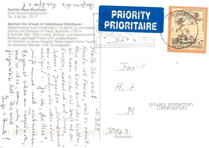 Krimml Gaestehaus Hoelzlbauer Krimml postalisch gelaufen 1998 Erhaltung siehe scans [KathaD81] Kathoren