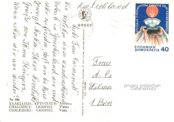 Kriopigi Camping Strand postalisch gelaufen nach 1965 Erhaltung siehe scans [LiesaD40] LiesID40