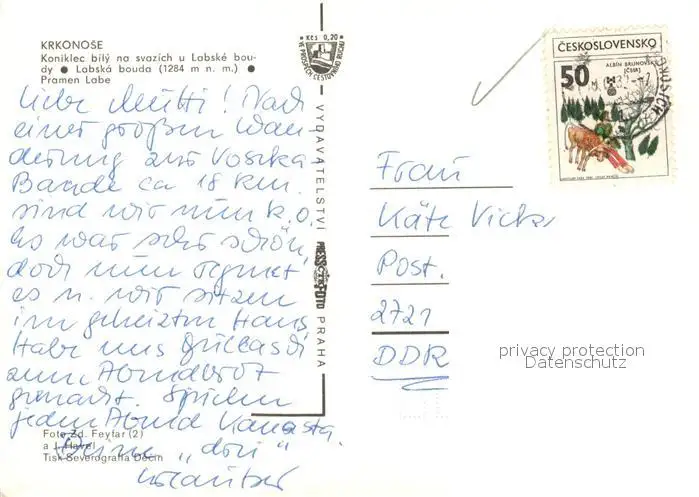 Krkonose Labska bouda Krkonose postalisch gelaufen nach 1965 Erhaltung siehe scans [KathaD81] Kathoren