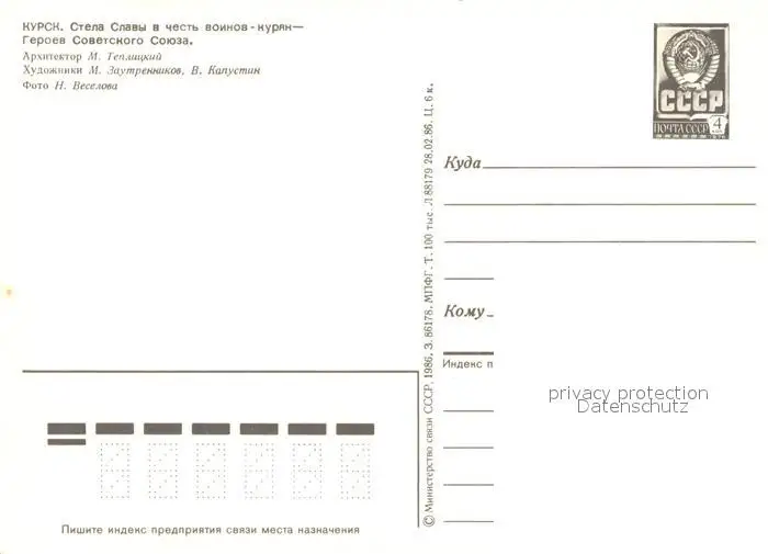 Kursk Denkmal Kursk postalisch nicht gelaufen nach 1965 Ganzsache (eingedruckte Briefmarke) Erhaltung siehe scans [NatalD47] Ganzsache (eingedruckte Briefmarke) NataID47