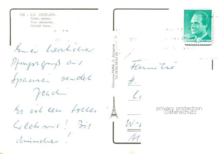 La_Coruna_ES Vista aérea postalisch gelaufen nach 1965 Fliegeraufnahme Erhaltung siehe scans [FriedD77] Fliegeraufnahme Frierer