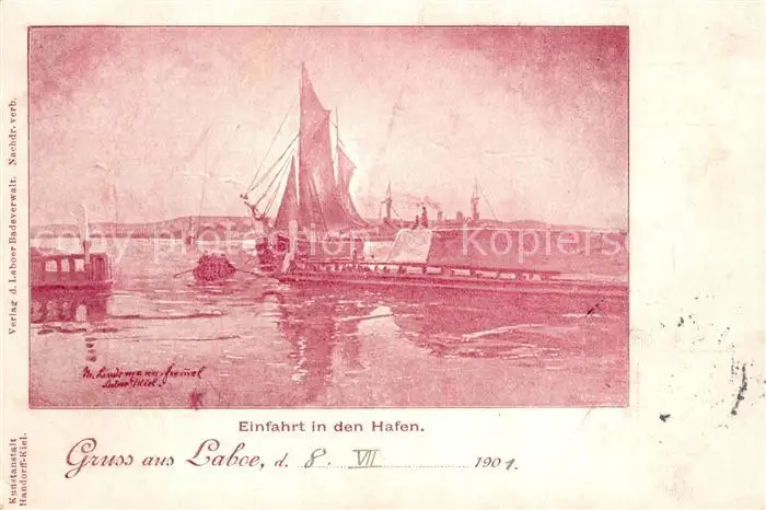 Laboe Einfahrt Hafen Laboe postalisch gelaufen 1901 Erhaltung siehe scans [KathaD81] Kathoren