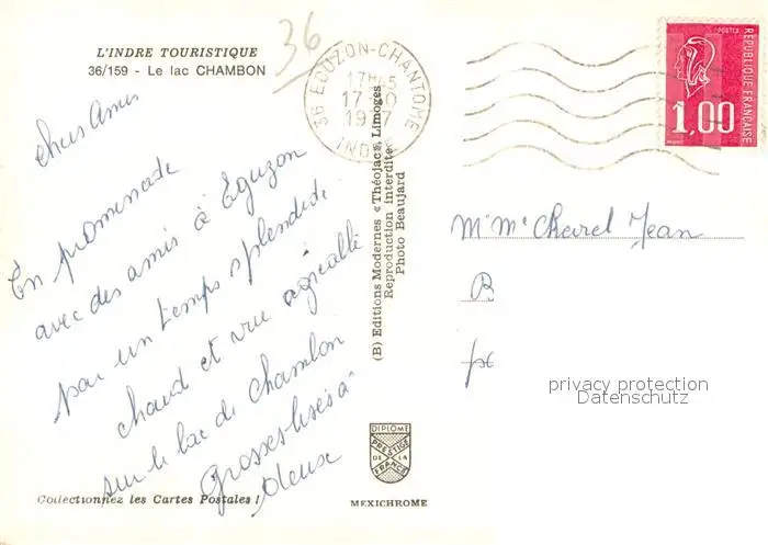Lac_Chambon Vue aérienne postalisch gelaufen 1977 Erhaltung siehe scans [FriedD77] Frierer