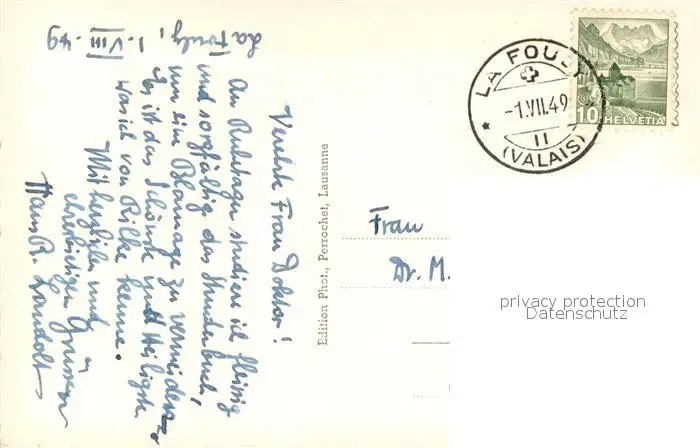 Lac_Ferret_VS et Col de Fenetre postalisch gelaufen 1949 Erhaltung siehe scans [WerneD78] WernPID7