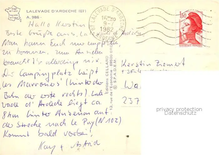 Lalevade-d_Ardeche_07 Vues d ensemble postalisch gelaufen 1982 Erhaltung siehe scans [FriedD77] Frierer