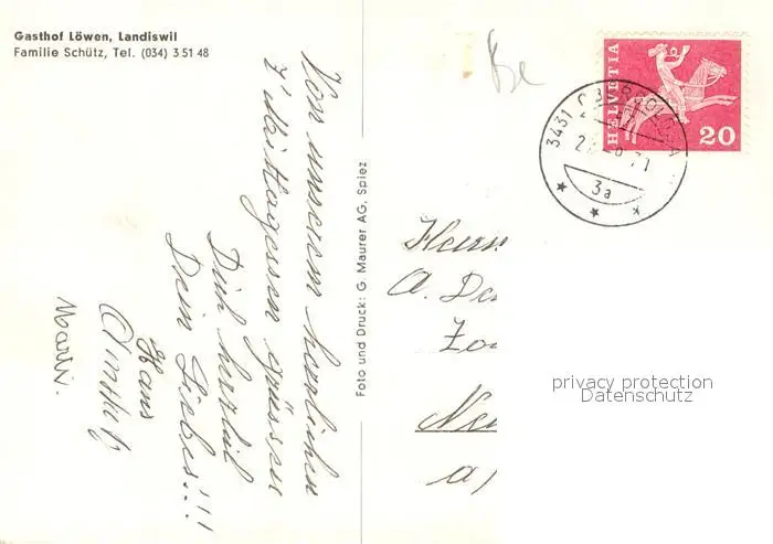 Landiswil Gasthof Loewen Landiswil postalisch gelaufen 1971 Erhaltung siehe scans [FriedD77] Frierer