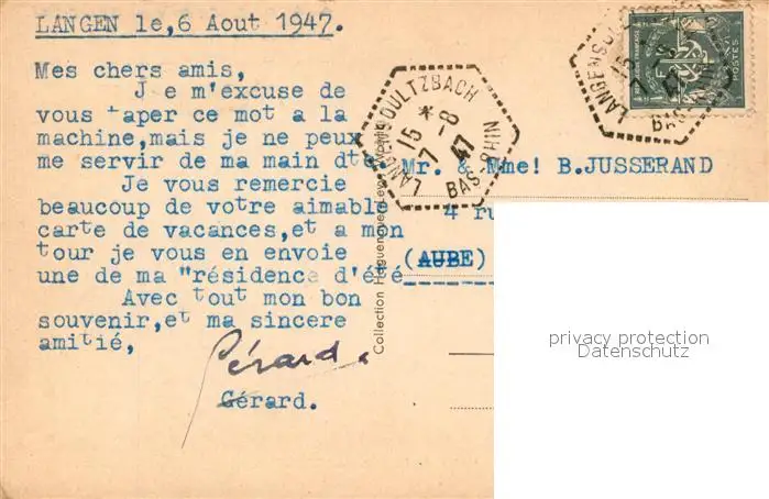 Langensoultzbach Camp Langensoultzbach postalisch gelaufen 1947 Erhaltung siehe scans [LiesaD40] LiesID40