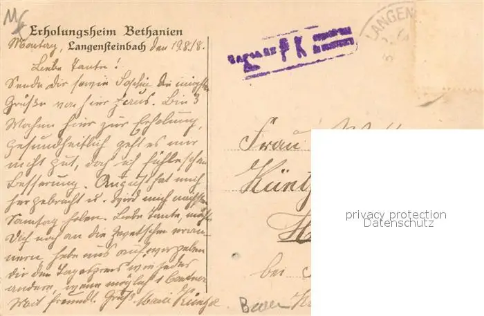 Langensteinbach_Karlsbad Erholungsheim Bethanien Langensteinbach_Karlsbad postalisch gelaufen 1908 Erhaltung siehe scans [FriedD77] Frierer