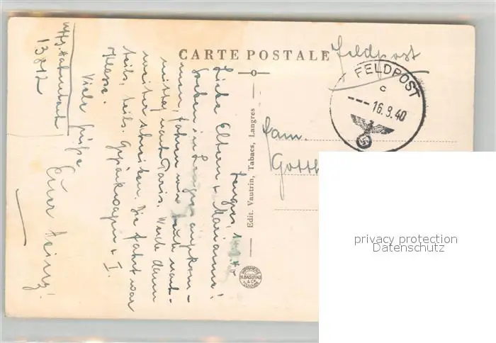 Langres La Poste Langres postalisch gelaufen 1940 Feldpost - Stempel Erhaltung siehe scans [FriedD77] Feldpost - Stempel Frierer