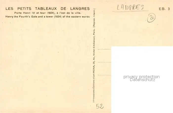 Langres Porte Henri IV et Tour Collection Les Petits Tableaux de Langres Langres postalisch nicht gelaufen 1921-1965 Erhaltung siehe scans [FriedD77] Frierer