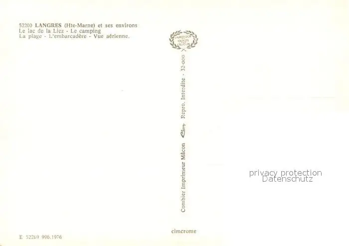 Langres et ses environs Lac de la Liez Camping Plage Embarcadère vue aérienne Langres postalisch nicht gelaufen nach 1965 Erhaltung siehe scans [FriedD77] Frierer